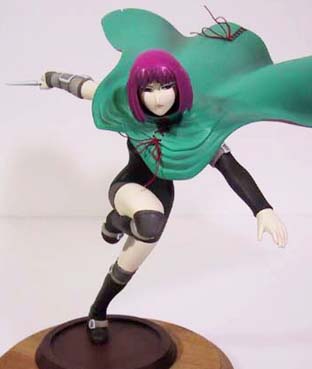写真監修時の原型では、マントの紐はモールドで表現していましたが 造形上難があったので色々仲間に相談して本物の糸を通すことに変更しました。 多少違和感がありますが汚いモールドで仕上げるよりはよかったと思っています。