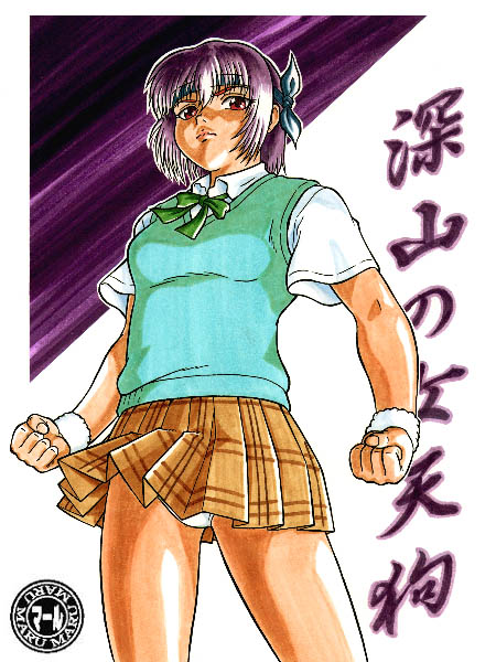 資料が無いのでゲームのプレイをビデオに撮って参考にしました。 ボスキャラを倒した後の決めセリフのポーズが元ですが 後から確認したらパンチラは無かった・・・(爆)。 しかし、この姿で決めセリフを言われても締まらない・・・。 00.6/15制作