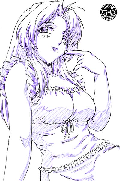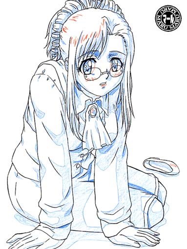 仕事の合間に隙を見て描いたもの(笑)。 これを描いている時点では、この向きの顔の資料が殆ど無く 想像に頼って描いたので変です。 制作時間2時間くらい 2002.2/5制作